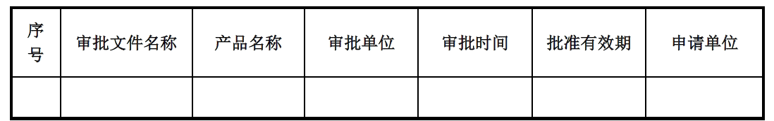五、国家法律法规要求的行业批准文件目录(限10个)